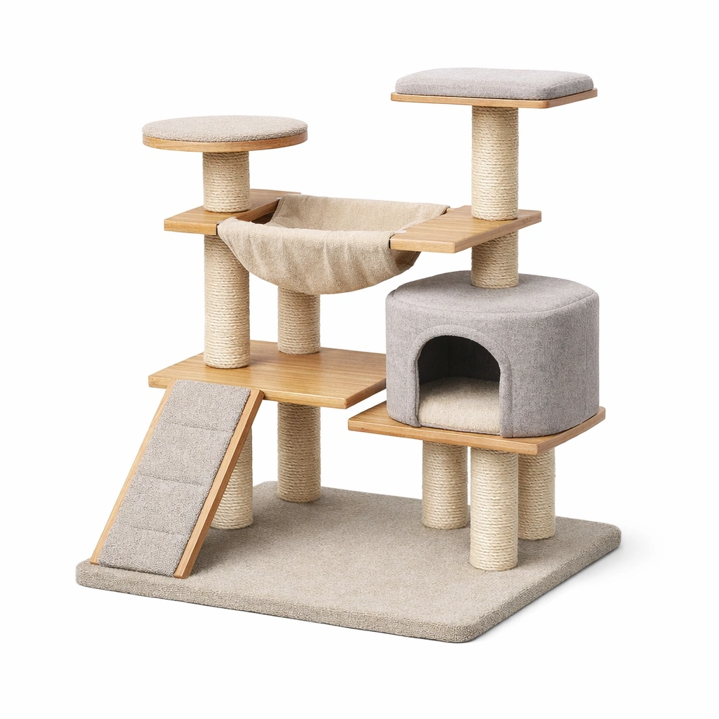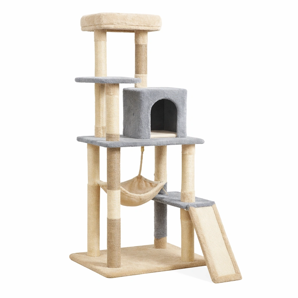 Kratzbaum Holz Sisalseil Plüsch Beige Grau