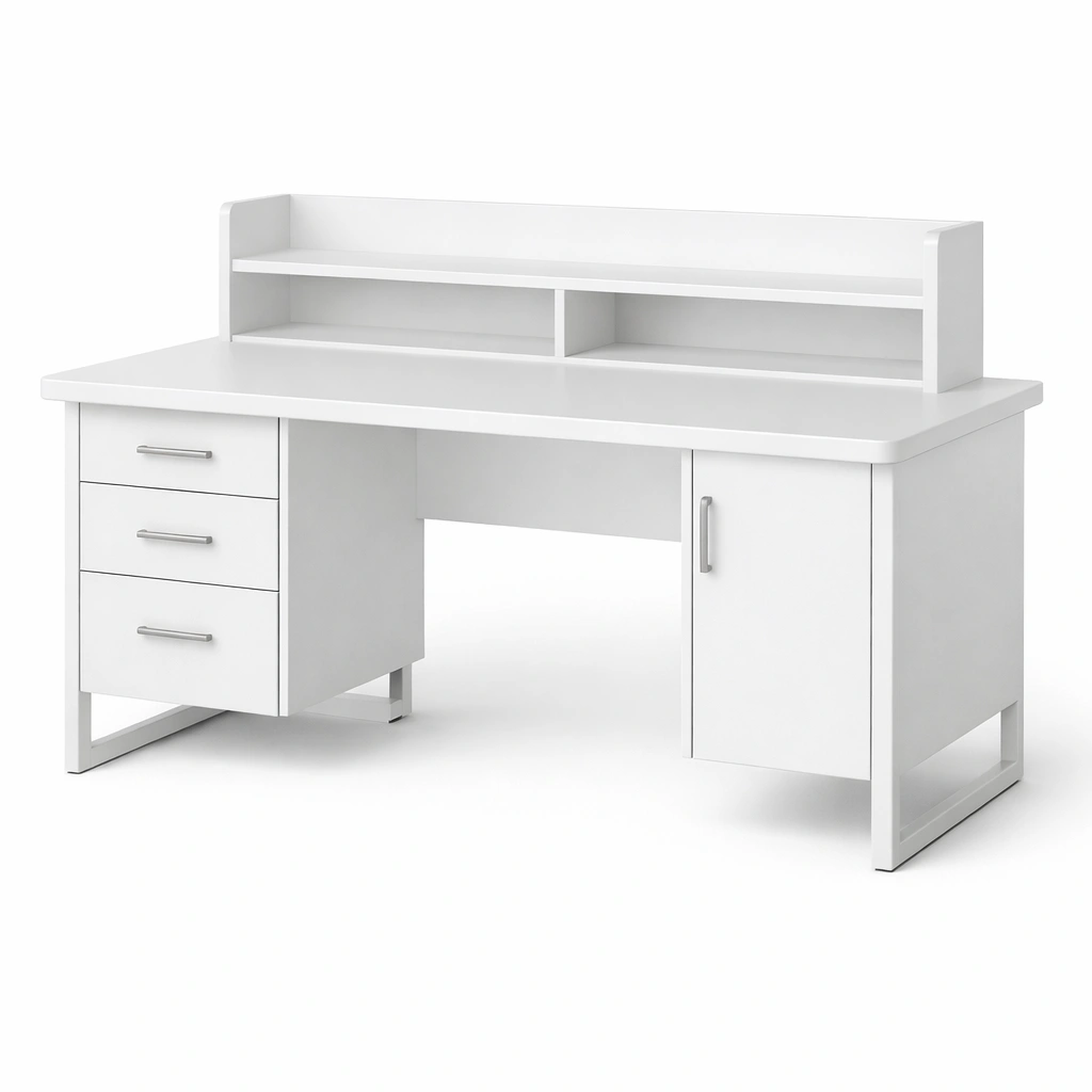 Schreibtisch Holzwerkstoff Weiß Schubladen Tür