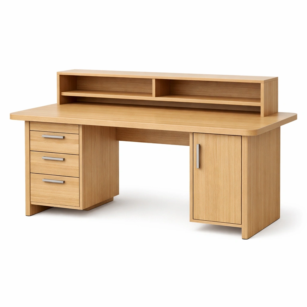 Schreibtisch Holz Regalaufsatz Schubladen Eiche