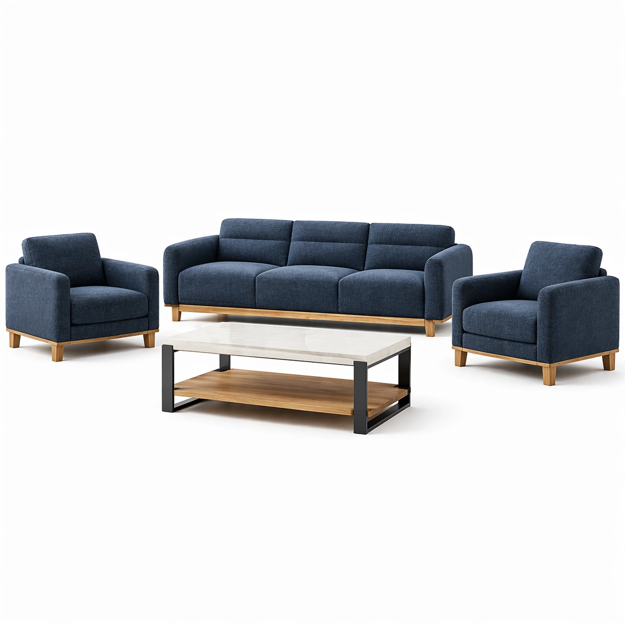 Sofaset Holz Stoff Dunkelblau Tisch