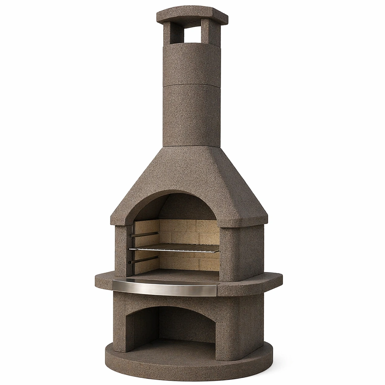 Dieses Gartenkamin besteht aus hochwertigem Granit und ist mit einem Rost aus Edelstahl ausgestattet.